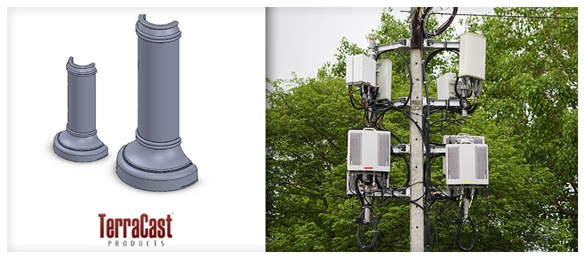 If your city is ready to meet the standards for function and aesthetics in relation to small cell 5G nodes, TerraCast has the perfect solution. With a variety of small cell concealments in different colors, designs, and specifications, your municipality is sure to appreciate the aesthetically pleasing solution. From concealment shrouds to transition bases to pole covers, TerraCast has just what you need to enhance the exterior appearance of the pole and base. Call today to learn more about TerraCast small cell concealment products.